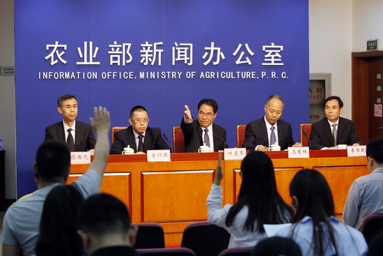5月9日,农业部举行“农业绿色发展五大行动”启动实施新闻发布会,农业部新闻发言人叶贞琴和农业部科技教育司司长廖西元、种植业管理司司长曾衍德、畜牧业司司长马有祥、渔业渔政管理局副局长李书民介绍相关情况并回答提问。