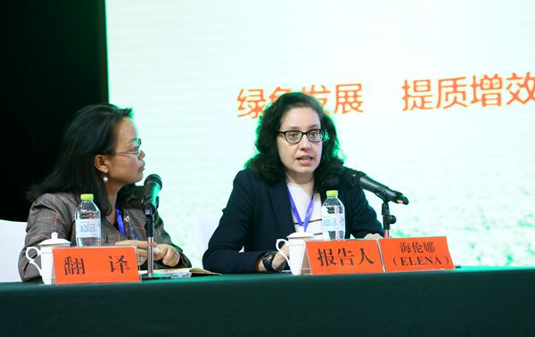 西班牙驻华大使馆农业处随员海伦娜在大会上分享西班牙蔬菜产业管理及安全生产经验