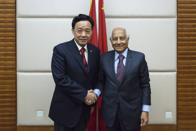 7月27日,农业部副部长屈冬玉在北京礼节性会见联合国粮农组织前任驻华代表阿马尔·库瑞西。