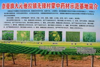 “奈曼属于温带大陆性季风气候,年均气温7.4℃,年均降水366mm,年均日照2997.5小时,无霜期163天左右,发展蒙中药材产业具有得天独厚的条件,南部石质山区的粗骨褐土、栗钙土、褐土、黄褐土、沙壤土,适宜苍术、知母、黄芩、远志、柴胡、地黄、甘草、益母草等品种;中部沙区的沙壤土,适宜黄芪、苦参、甘草、麻黄、防风、赤芍、菟丝子、枸杞等品种;北部平原区的草甸土,适宜丹参、黄芪、木香、牛膝、板蓝根、北沙参、冬花、皂角刺等品种,所种植的中药材有效物质远高于国内同类产品,特别是黄芪、甘草、赤芍、北沙参、桔梗等驰名海内外,常年供不应求。因此奈曼正全力申报国家特色农产品优势生产区。”布仁旗长补充道。