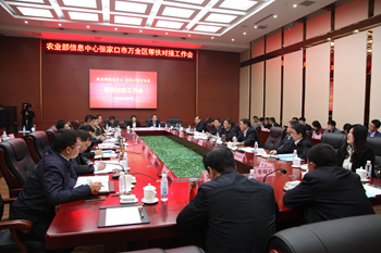 10月16日,农业部信息中心与张家口市万全区人民政府共同组织召开了扶贫帮扶对接工作会,举行了由京东集团、腾讯集团、农信通集团等企业参与的合作协议签约仪式,举办了以智慧乡村、信息进村入户和智慧农业为主要内容的信息化扶贫培训班,系列活动取得圆满成功。