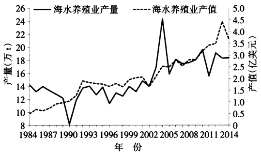 图4 1984—2014年美国海水养殖业产出变化示意图