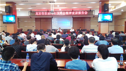 4月13日下午,龙岩市农业局联合南城兴晖社区邀请龙岩市新罗区西安村党委书记,全国优秀共产党员,全国劳动模范,十、十一、十二、十三届全国人大代表,全国“十大杰出村官”章联生同志宣讲全国“两会”精神,市农业局与兴晖社区共150多名党员干部参加活动。会议由局党组书记、局长廖汉铭主持。