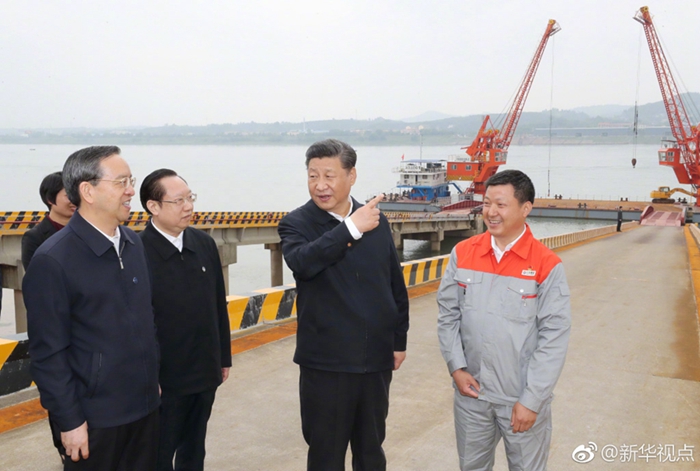 新华网北京4月24日电 24日上午,习近平从北京直飞湖北宜昌。一下飞机便前往长江沿岸考察调研长江生态环境修复工作,把脉长江经济带建设。(据新华社“新华视点”微博报道 文字:霍小光 摄影:鞠鹏)