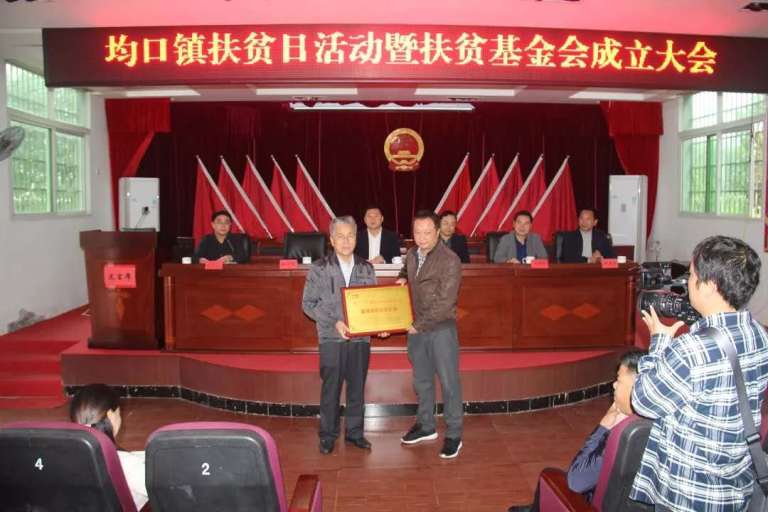 均口镇举办扶贫日活动暨扶贫开发基金会成立仪式,基金会法人代表黎圣阳同志接受首批捐赠企业、单位、乡贤的捐赠,与会领导授予捐赠企业精准扶贫示范企业荣誉牌,并由衷地感谢他们的慷慨捐赠和对均口镇扶贫事业的鼎力支持。