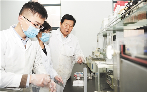 西北农林科技大学农学院退休教授王辉受学校返聘继续其未完的项目。图为王辉(右一)在西北农林科技大学农学院的实验室里指导学生实验。 新华社 刘 潇 摄