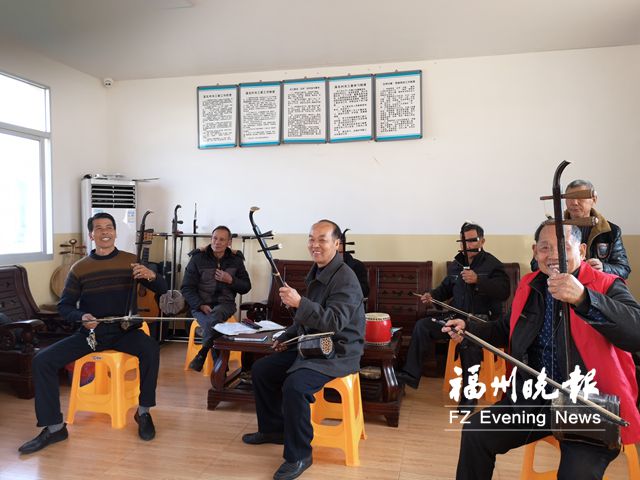 自溪北村幸福院建成以来,林敦章就会隔三差五地约好友来到幸福院的文化活动室里,吹拉弹唱。
