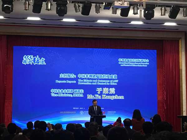 4月9日,由中国农业农村部与联合国粮农组织(FAO)、世界动物卫生组织(OIE)共同举办的非洲猪瘟防控国际研讨会在京举行。与会代表就疫情监测预警、疫情根除和疫苗研发进展等议题开展了广泛交流,就加强防控合作,共同防范和化解非洲猪瘟带来的风险进行了深入探讨。农业农村部部长韩长赋、OIE总干事艾略特和FAO助理总干事提詹尼等出席会议并致辞。