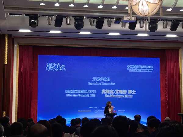 图为 世界动物卫生组织总干事 莫妮克·艾略特在开幕式致辞。 冯克 摄