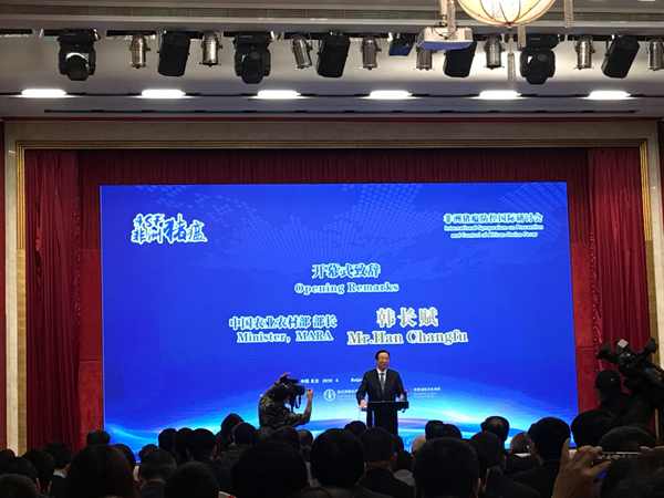 图为 农业农村部部长韩长赋发表演讲。 冯克 摄