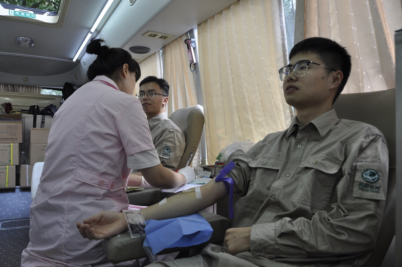 在献血现场,有多次参加献血的老职工,也有年青的新面孔,他们或坦然、或略紧张,但都勇敢地加入到无偿献血的队伍中。上午9点45分,林峰排了半小时队后,在工作人员的指导下填表、体检、抽血。