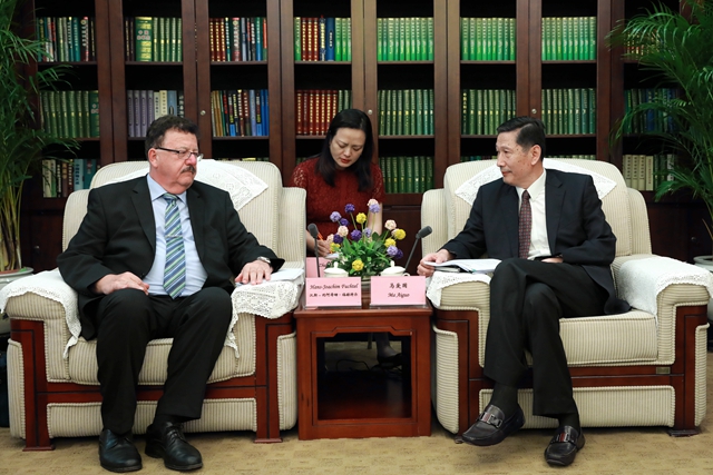 马爱国指出,作为中德关系的重要组成部分,中德在农业领域的务实合作一直走在中欧农业合作前列,取得了丰硕的成果。中德农业中心是两国农业部门在合作机制上的重大创新,有力推动了中德农业合作的务实发展。中方愿与德方在互利共赢的基础上,在农产品贸易、青年人才培养、动物卫生、农业科技合作、农业应对气候变化等双方共同关注的领域加强合作交流。马爱国还高度评价了德国对北京世园会的大力支持及付出的卓越努力。