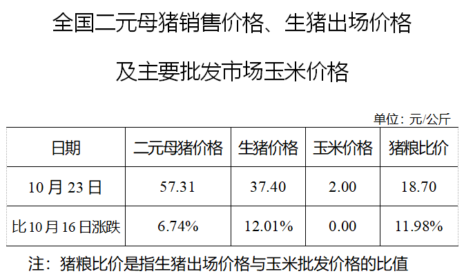 全国二元母猪销售价格、生猪出场价格及主要批发市场玉米价格