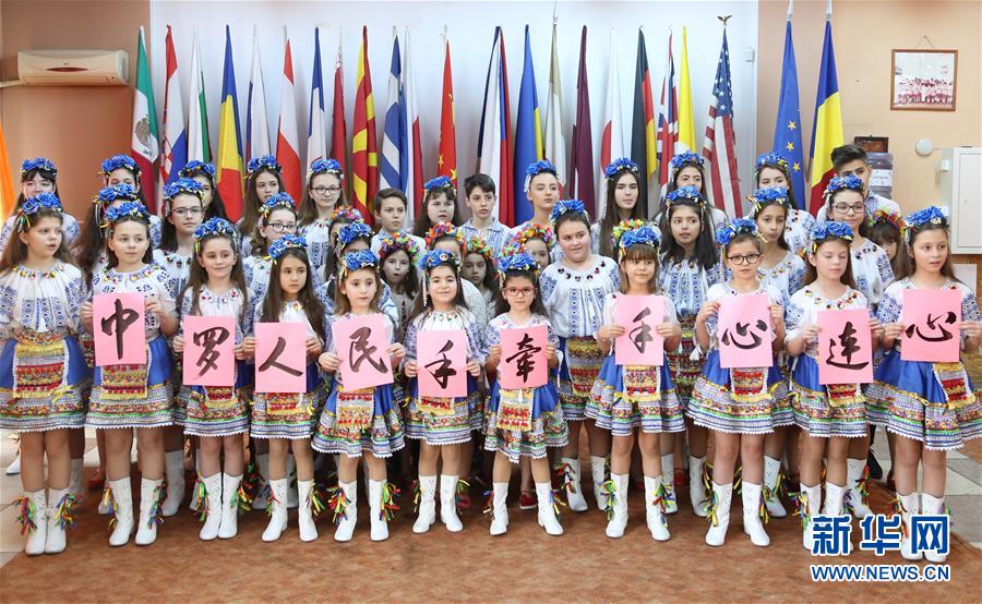 2月29日,在罗马尼亚首都布加勒斯特,罗马尼亚“小快板”合唱团的孩子们手持“中罗人民手牵手心连心”的汉字标语,为中国抗击新冠肺炎疫情加油。