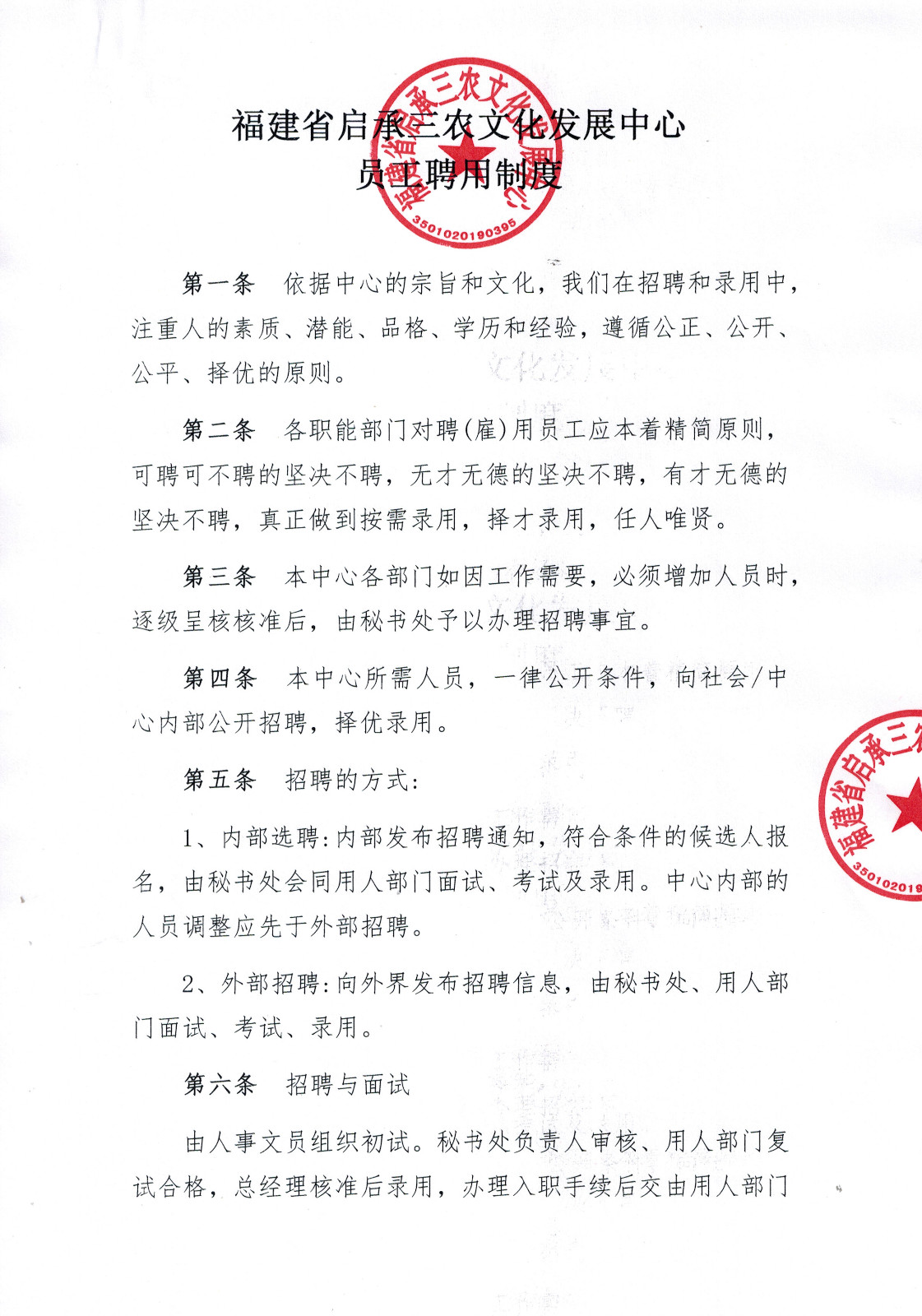 福建省启承三农文化发展中心聘用制度