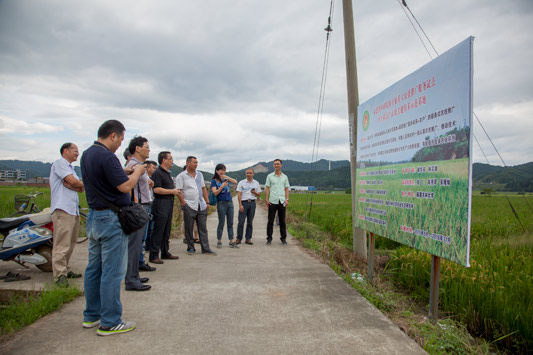 10月8日,省重大农技推广服务项目考核组到到建阳考核再生稻推广项目,省农林大学新农村发展研究院朱朝枝副院长、省农业厅科教处郑宇调研员、再生稻产业团队郑家团主任、研究员等十多名专家在吴光文副局长等人的陪同下实地考察了潭城街道回瑶村机收再生稻示范种植现场。