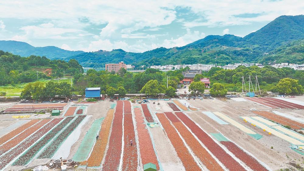盛夏,福安市潭头镇大庄村村民忙着采摘丰收的芙蓉李。不远处的晒果场上,刚采摘的芙蓉李被整齐铺开,果农不时翻动,确保每一颗果实都能被充分晾晒。