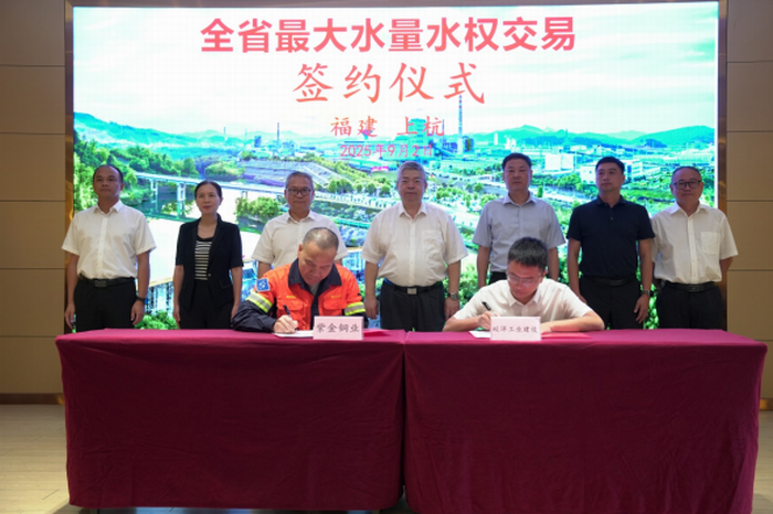 9月2日上午,紫金铜业有限公司与上杭县蛟洋工业建设发展有限公司成功达成一笔1.21亿立方米水权交易,省水利厅党组成员、副厅长吴深生出席签约仪式。这是我省单笔最大水量水权交易,也是全省乃至全国探索水库资产转让与取水权转让同步的先例。