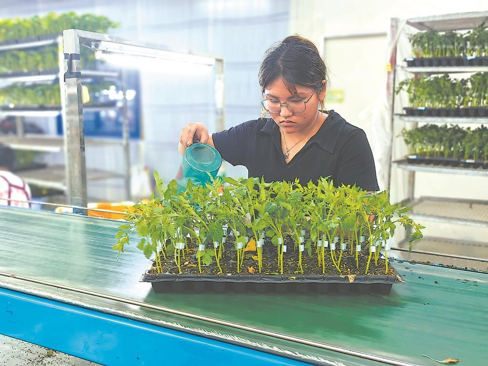 在厦门同安闽台农业融合发展(种子种苗)产业园,台胞曾明宝正忙着指导番茄嫁接苗生产。