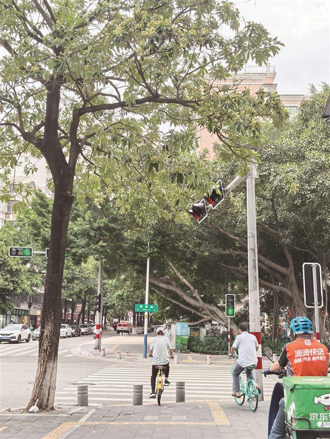 莲景路上的商户李先生正在引导停车,他说,气味是很“冲”,但遮阳效果不错,也没有大量落果。