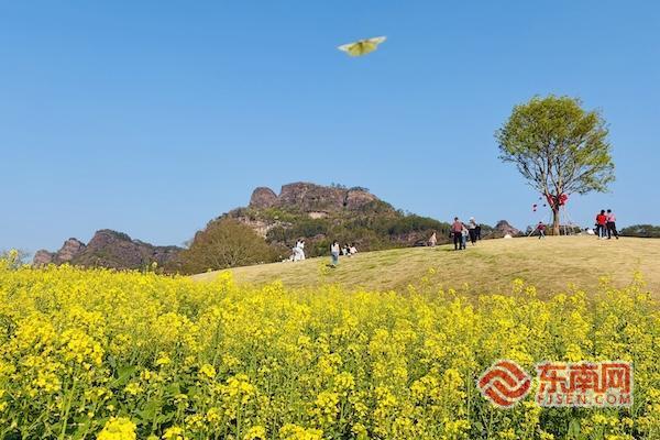 依托冠豸山世界地质公园、国家5A级景区金字招牌,当地在正山前打造连片油菜花田。春日里,金黄花海随风摇曳,与丹崖、碧水交织成绝美田园画卷,大批游客前来踏青、拍照、休闲,尽享春日惬意。游客邱女士表示,油菜花景美怡人,全家出游十分放松舒心。