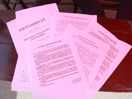 在现场,渔政人员向过往群众发放《中华人民共和国渔业法》“关于严禁炸鱼、毒鱼及非法电捕作业的通告”等材料,并对渔民们在渔业法等法规中不理解、不明白的章节做了耐心细致的解答。