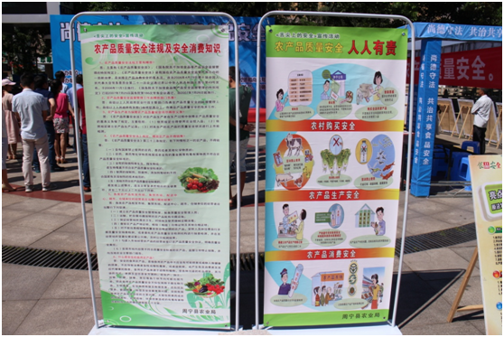 为提升农产品质量安全水平,周宁县农业局、食安办等单位开展了2017年农产品质量安全宣传周活动,本次活动主题为“尚德守法,共享共治农产品质量安全”。该食安办、农业局等19个单位,共计35人参加了此项活动。活动以设立咨询服务台、展示宣传展板、开展免费农残检测、发放宣传资料等方式进行。本次活动累计发放各类农产品质量安全相关宣传资料500多份;制作并展示宣传展板18块;现场免费检测蔬菜15个样品,合格率100%;到场群众约500人,接待群众现场答疑150人次。