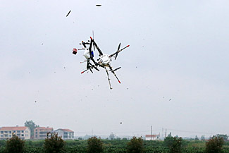 马达轰鸣,机翼飞旋,多种类型的植保无人机在稻田上空你来我往,喷洒农药。9月5日—6日,由中国农业电影电视中心(CCTV—7农业节目)、中国农业大学、中关村同航智能装备技术创新联盟联合主办,以“创新科技,创造奇迹”为主题的中国无人机与机器人应用大赛——植保无人机决赛在湖北省武穴市万丈村举行,这既是一场全方位展示我国植保无人机性能和飞防技术的大赛,又是一场植保无人机“虫口夺粮”的实战。