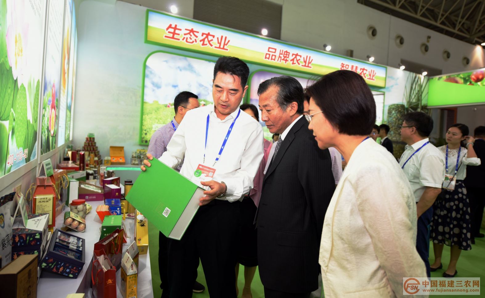 开幕式一结束,农业部党组成员、副部长屈冬玉陪同全国政协副主席罗富和,农业部原党组成员、副部长陈晓华,分别到福建现代农业馆参观指导。福建省农业厅姜绍丰副厅长介绍了“清新福建·绿色农业”的发展情况。姜绍丰副厅长陪同领导一一参观了参展的福建品牌农产品。特别对福建百香果和福鼎白茶、福州茉莉花茶进行了详细介绍,还对我省农产品质量安全可追溯监管平台进行了体验操作与讲解。