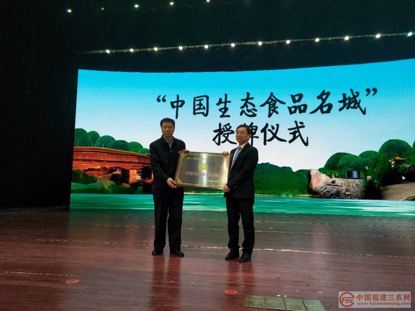 值得一提的是,现场举行的授牌仪式上,中国食品工业协会授予光泽县“中国生态食品名城”称号。同时,“中国生态食品城”logo正式发布。