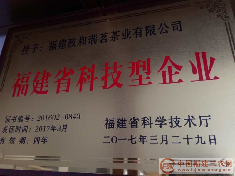 2006年3月首批通过福建省质量技术监督局QS质量安全生产认证。2007年省农业厅定为“福建省农产品加工示范企业”;2008年3月与福建农林大学中国白茶研究所联合成立了“政和白茶研究基地”。同年参与“白茶国家标准GB/T22291-2008”起草。2010年5月通过ISO9000与ISO22000认证。2011年被国家标准化委员会授予“国家标准化白茶生产示范企业”。2012年3月与福建农林大学联合成立了“政和工夫红茶研究基地”,“国家科技支撑计划工夫红茶自动化加工示范企业”。 2014年被福建省科学技术厅授予“福建省科技型企业”。2015年参与国家标准“白茶加工技术规范GB/T328743-2016”起草。