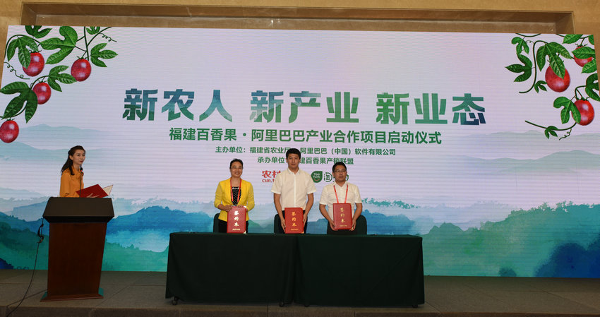中国福建三农网福州6月18日讯(刘文标 何忠军)2018年6月18日,“新农人 新产业 新业态”福建百香果·阿里巴巴产业合作项目启动仪式在福州海峡会展中心隆重举行。省农业厅陈明旺副厅长,阿里巴巴乡村事业部郑威副总经理和福建百香果主产区的武平、长汀县政府负责同志出席。此次活动由福建省农业厅、阿里巴巴(中国)软件有限公司共同主办,来自福建百香果产销联盟、福建百香果主产县的代表参加了此次活动。
