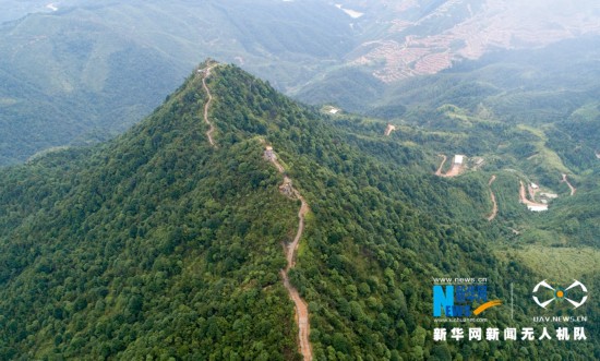 坪水村地处海拔约700米的深山中。这是在山间开设的登山步道,游客可登高揽胜,一路观赏绿色森林之美,亲近大自然(无人机拍摄)。新华网 肖和勇 摄