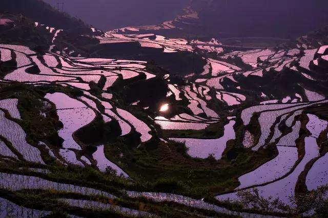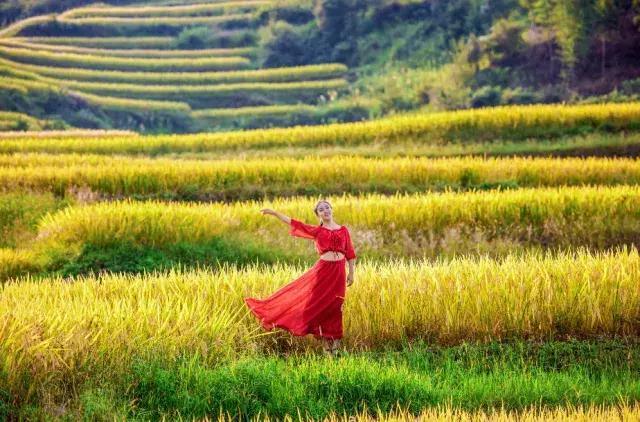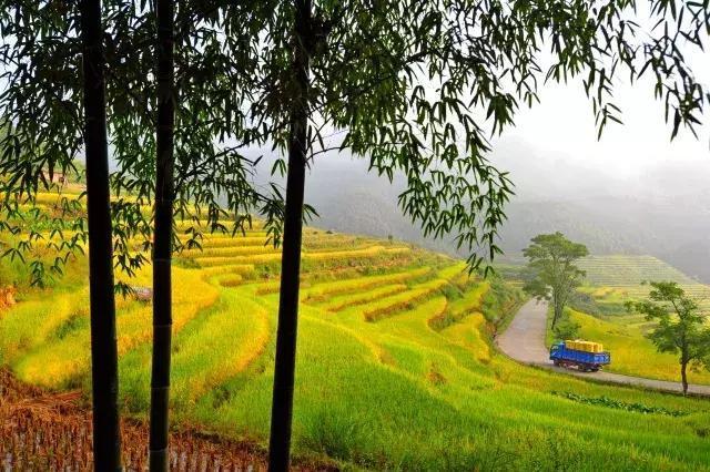 秋天则别有一番韵味。遥想唐宋开垦之初,客家先民在此陡坡乱石中世代耕耘,凭借勤劳智慧,日出日落,春种秋收,创造出客家梯田农耕文化。如今,近百亩的马罗、肖岭梯田,犹如大地的雕刻家。金黄的稻浪自山脚盘绕而上,于崇山峻岭间错落层叠,令人目不暇接。