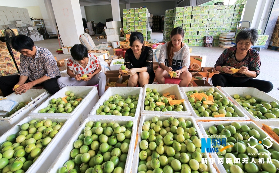 在漳浦县互联网经济产业园,工人们正在分拣、包装当天采摘的百香果。新华网 肖和勇 摄