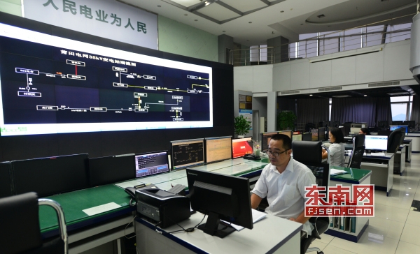 在莆田电网调度控制中心,值班人员密切关注假期电网负荷变化情况。(朱清霞 摄)