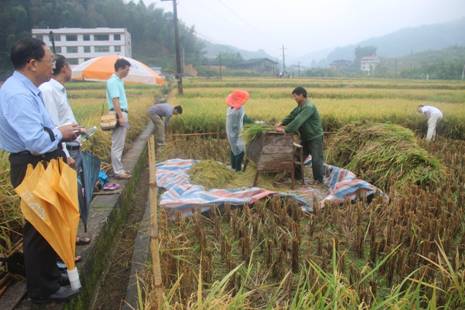 10月8日,福建省农科院组织省内外专家组到尤溪县西城镇麻洋村,对国家重点研发计划项目“长江中下游东部双季稻区生产能力提升与肥药精准施用丰产增效关键技术研究与模式构建”子项目“适宜红黄壤丘陵山区机械化生产的强再生力水稻品种筛选与区域优化布局”136亩谷优676再生季示范片进行测产验收。 专家组听取了项目组的工作汇报,考察了田间现场,该示范片群体整齐,长势均衡,熟期转色好,专家组随机抽取3块田,经算术平均,再生稻亩产干谷为471.1公斤。专家组组长尤民生教授表示尤溪探索的再生稻绿色超高产栽培技术攻关为国内光温条件类似地区的农民找到一条轻简化、高效的增产增收路径,具有重要的示范带动意义。