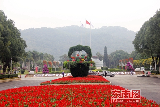 今天上午,在东南花都,东南网看到新铺的沥青路面上,摆放的花卉争奇斗艳,展馆内工人正一片忙碌,布置展厅。福建海峡花博会展有限公司招商部副经理张婧介绍,第十届农博会·第二十届花博会正在紧张筹备中。