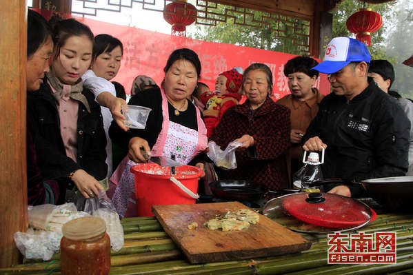 值得一提的是,活动现场,峡头村两委还为大家奉上了琳琅满目的全笋宴,清炒小笋、小笋炒肉、小笋汤等一笋多吃的作法,将野生小笋的鲜美味道体现得淋漓尽致,让游客们回味无穷。此外,立夏糊、豆花、烤全羊、鼠曲饼、秘制笋酱等秀色可餐的当地风味美食更是让游客们大呼过瘾,不虚此行。