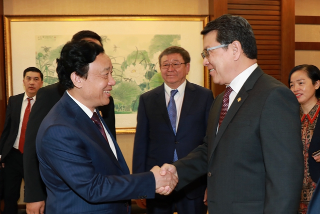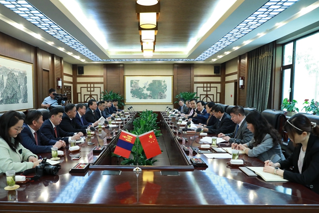 屈冬玉会见蒙古国食品、农业与轻工业部部长乌兰·卓尔丹木