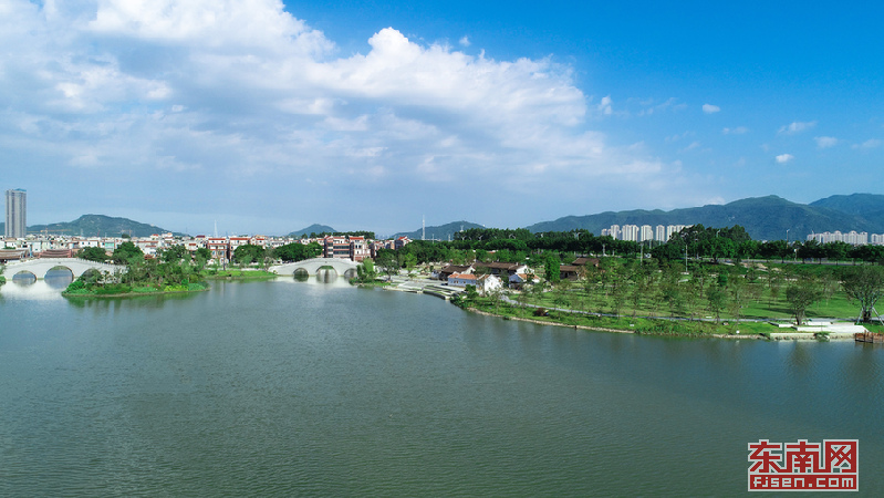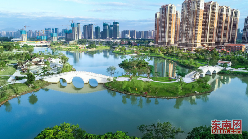 湖中有岛,岛上有桥,桥中有亭……漳州市区再添一处好景致。近日,历经两年多时间的施工建设,漳州龙文九十九湾湘桥湖成形,展露出了具有闽南风味的自然生态滨水景观带。