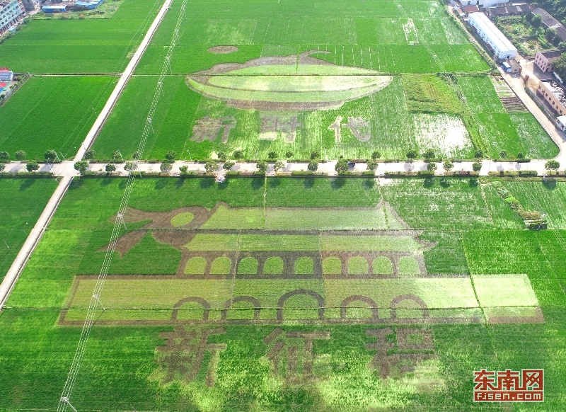 28日,福鼎市店下镇万亩洋的“新时代”“新征程”稻田画随各色水稻生长,图案清晰呈现,进入最佳观赏期,吸引众多游客前来观赏,表达了福鼎人民对新中国成立70周年的美好祝福。店下镇素有“福鼎米粮仓”之称,全镇粮食种植面积达3.2万亩。