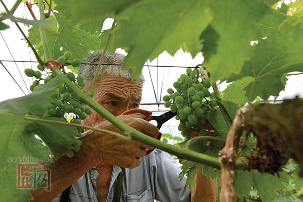 村民为葡萄疏果、剪枝