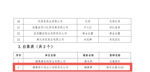 近日,由中国茶叶流通协会、黄山市人民政府主办的“黄山杯”首届全国传统名茶产品质量推选活动在安徽省黄山市成功举办。我会会员福建茶叶进出口有限责任公司选送的“银针白毫”(5135)、“牡丹皇”白茶(5152)分别荣获“特别金奖”、“金奖”。