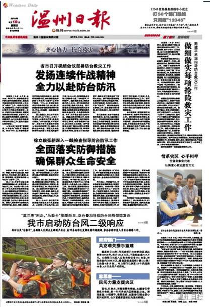 温州市在省委、省政府的坚强领导和统一指挥下,把防台抗台作为当前首要任务来抓,强化责任落实,发扬连续作战、顽强拼搏精神,全力以赴开展防台抗台和抢险救灾工作。