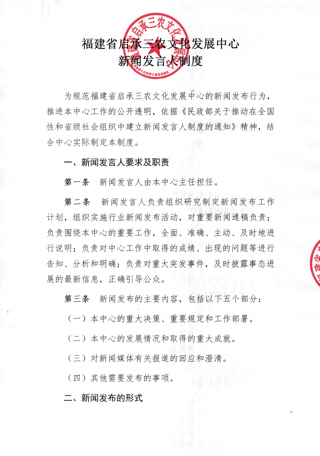 福建省启承三农文化发展中心新闻发言人制度