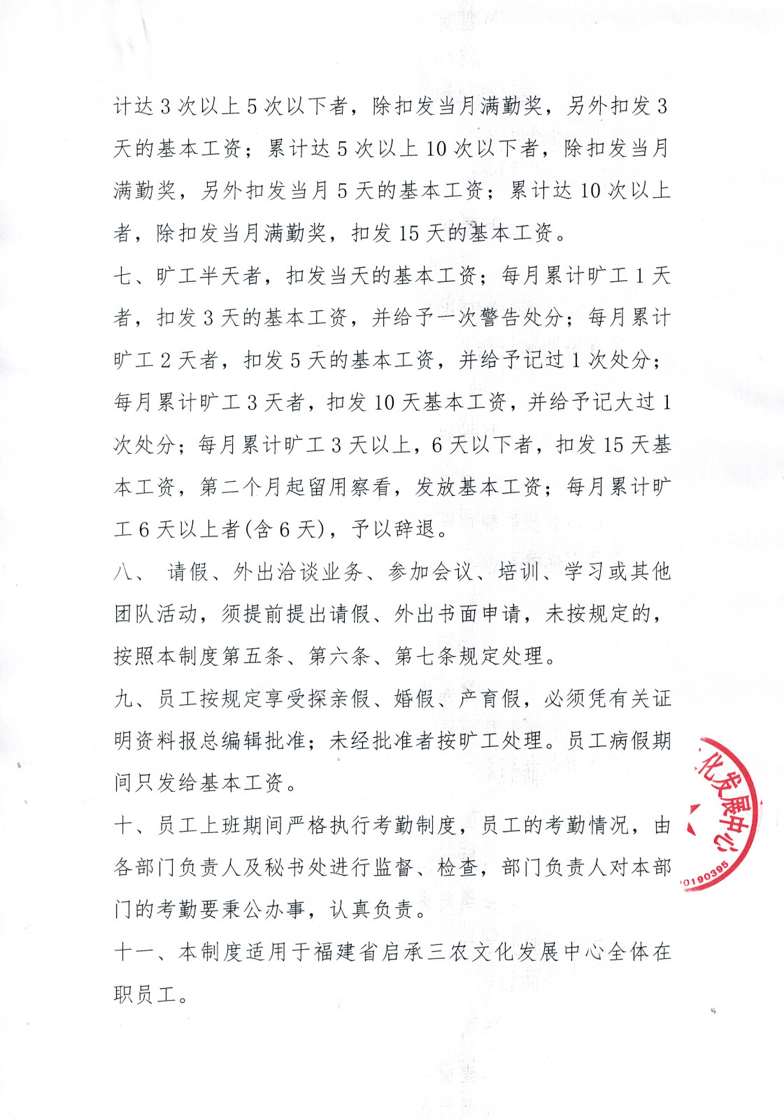 福建省启承三农文化发展中心考勤制度