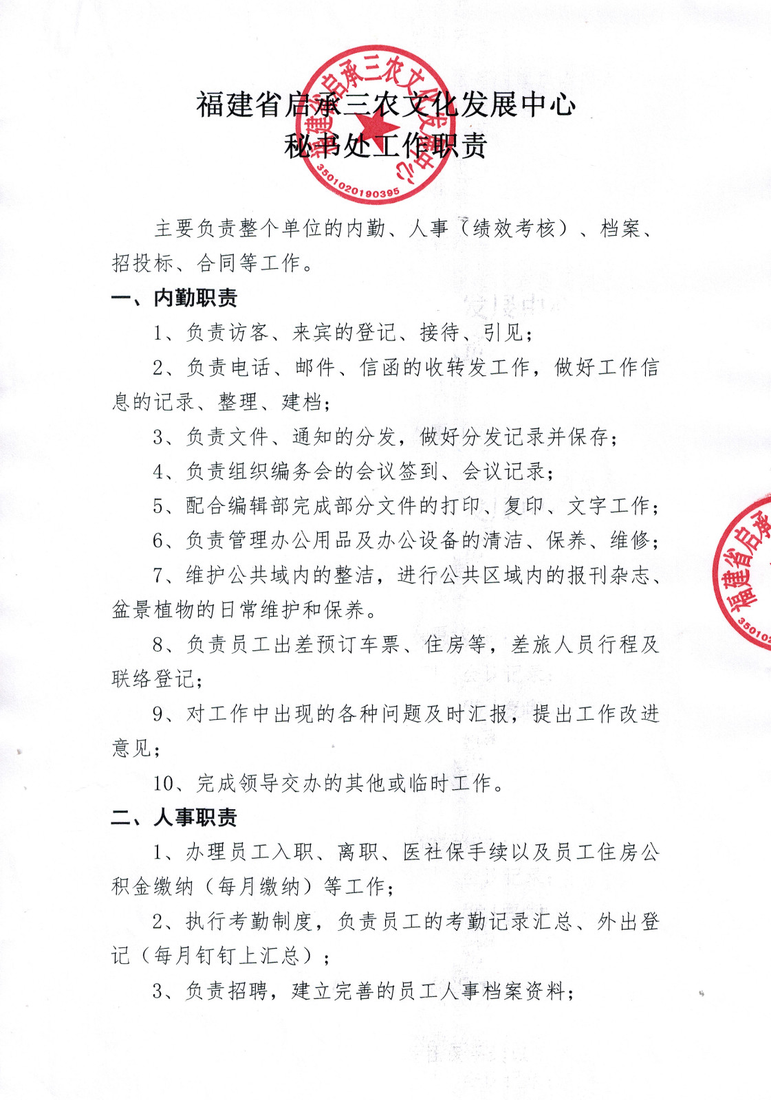 福建省启承三农文化发展中心秘书处工作职责