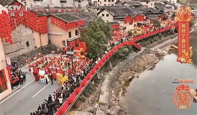 今年1月6日,央视小春晚《生龙活虎迎春来》来到寿宁县下党乡录制节目。各路明星云集,尽显风采,《虎虎生威》《精忠报国》《桥边姑娘》《美丽中国年》《鸾峰桥》《日记》等节目轮番登场;鱼灯、鲤鱼伞、板灯龙、提线木偶、火鼎公火鼎婆、霍童线狮、花车、北路戏等闽东各地非遗元素纷纷亮相,让年味十足并具有地方特色的虎年春节提前到来。