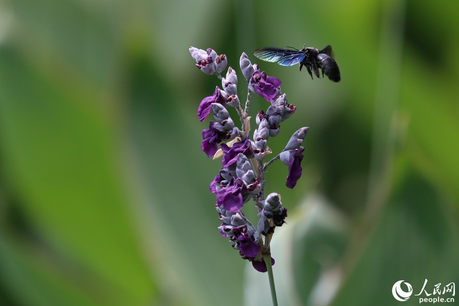 五缘湾畔,木蜂在花丛中“劳作”。人民网 陈博 摄